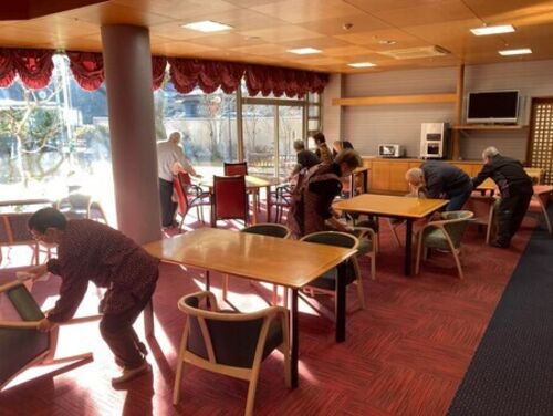 年末の恒例行事としてご入居者の皆さんにも協力いただいて館内の大掃除を行いました。ラポーレ駿河の自慢は清潔感!スタッフが日頃から細やかに掃除をしていますので、さほど手をかけるところは無い??とはいえ、普段使っている椅子やテーブル、廊下の手す…